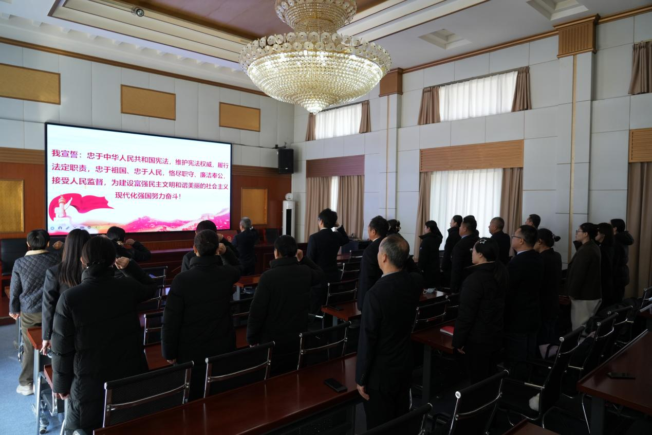 12月4日上午,陵园全体干部职工在多功能厅参加宪法宣誓仪式,全体人员整装肃立,高举右拳,庄严宣誓。仪式结束后,与会人员集中观看《中华人民共和国法治宣传教育法》全民普法公益大讲堂,通过生动翔实的讲解进一步深化对法治精神的理解与认同。大家纷纷表示,将切实履行宪法赋予的职责与使命,以更加坚定的信念、更加务实的作风投身到陵园各项工作之中,做宪法的忠实崇尚者、自觉遵守者、坚定捍卫者。