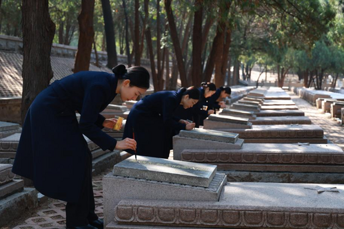 早部署、早行动,铺就清明祭扫活动底色。自“青春志愿 一‘鲁’同行”学雷锋主题活动月启动以来,陵园率先启动清明志愿预热工作,联合彩虹志愿服务队先后组织150余名志愿者分三批次开展“执笔书清明”为烈士墓碑描金活动。志愿者们怀着对英烈的无限崇敬,手持金漆、全神贯注,以细腻笔触一笔一划勾勒烈士姓名与碑文,让褪色的字迹重焕光彩,让英烈英名永留人间。描金活动获得媒体相继报道与社会关注,这不仅是一次青年志愿者感悟革命精神、缅怀英烈事迹的实践课堂,更充分彰显了强大的精神感召力,有力弘扬了社会正能量,为清明祭英烈系列活动的有序开展铺就青春底色。
