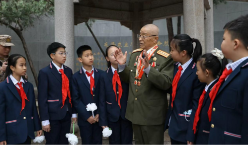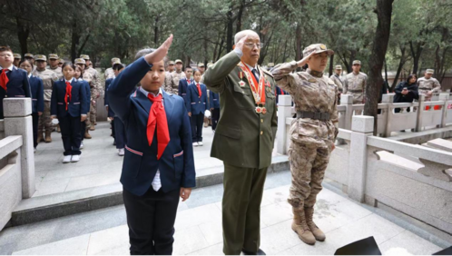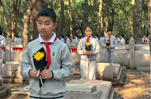 敬献一束白花,寄托无限追思。孩子们手捧白菊,轻放在烈士墓碑上,以标准队礼致敬英烈,真挚表达对革命先辈的无限崇敬,告慰先烈山河已无恙。
