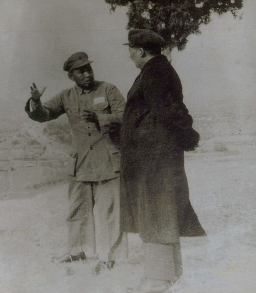 1952年10月27日,中共中央主席、中央军委主席、中央人民政府主席毛泽东与山东军区司令员许世友在黄祖炎烈士的墓前。