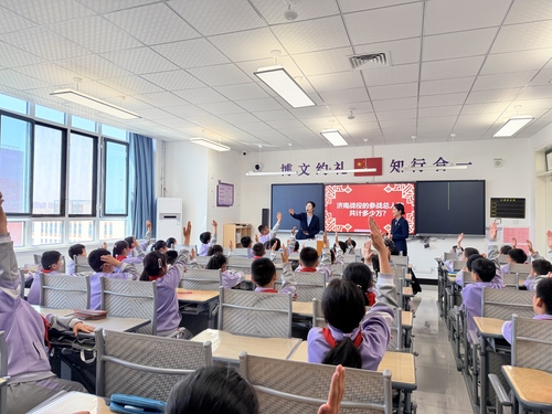 “我要学习小萝卜头在苦难中乐观向上的精神”“听了老师的讲解,我知道了英雄山是一座红色山、文明山”“了解完济南城的历史,更坚定了我长大要参军,保家卫国的决心”。现场互动气氛热烈,同学们踊跃举手,争相分享感悟、回答问题。宣讲团老师为积极发言的同学送上红色书籍和藏品书签,鼓励大家铭记历史、争做红色传人,红色记忆在仪式感与互动感中再一次强化,英雄精神在掌声与热泪中入脑入心、落地生根。