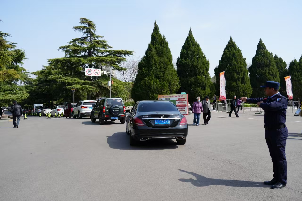 为保障清明祭扫高峰平稳有序,园(馆)进一步优化清明活动应急预案,联合公安、交通、消防、卫健等职能部门,构建“全链条”保障体系。科学部署力量,维持现场秩序;严格管控火源,清查隐患盲区;协调救护车辆,增派急救人员,做好医护保障;加强交通疏导,入园车辆统一单循环进出,提高高峰时段车辆通行效率,截至目前,进出车辆共计8000余辆次。