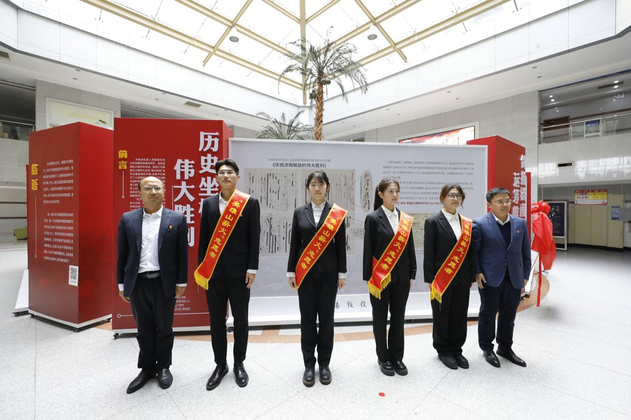 在全体师生的热切期盼中,商华、陈利伟共同为“伟大胜利”济南战役史实展揭幕,济南大学校团委书记李书翔、济南战役纪念馆副馆长王岩为志愿讲解员代表颁发“英雄山薪火”志愿者绶带,这不仅标志着馆校协同育人迈出坚实一步,更象征着红色精神在青年接力中薪火相传。