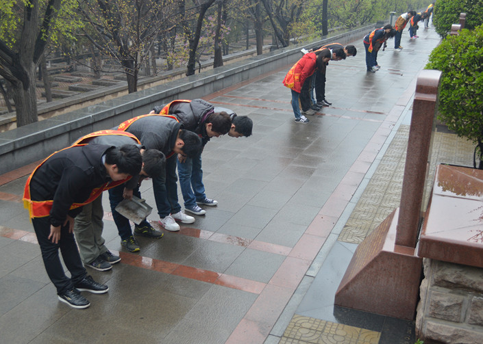 3月30日,小雨纷纷,依然没有阻挡社会各界前来英雄山缅怀革命先烈、参观纪念馆的脚步。山东职业学院轨道交通系35名志愿者由团总支副书记薛梦雪、李岩,青年志愿者协会会长董振等带队,到济南革命烈士陵园清明广场做志愿服务,用自己特有的方式来缅怀革命先烈。在烈士墓区,他们小心翼翼的擦拭墓碑,并向革命烈士深深鞠躬。