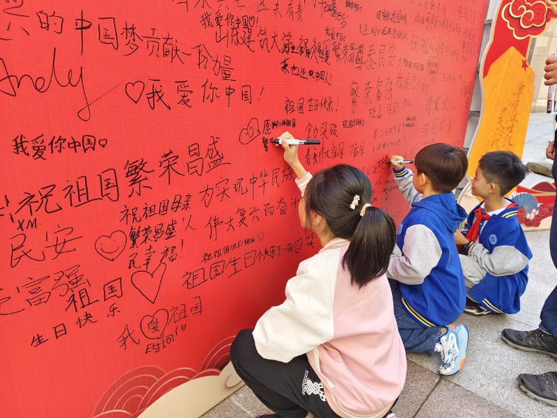 纪念馆在门前增设打卡留言墙,入馆观众们可在此“花式”告白祖国,向祖国献上最深情的祝福。
