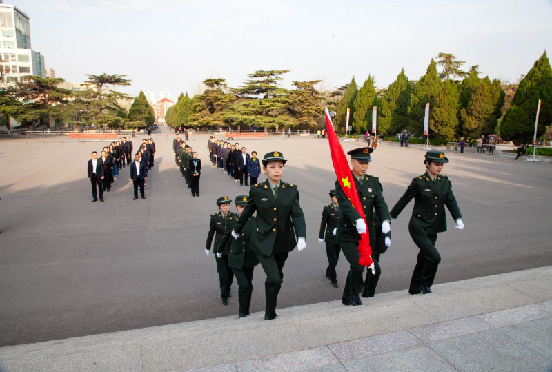 上午7时30分,活动正式开始。全体干部职工在英雄广场整齐肃立迎国旗、升国旗。雄壮的国歌在青山翠柏间激荡,鲜艳的五星红旗在四月的第一缕阳光下冉冉升起。