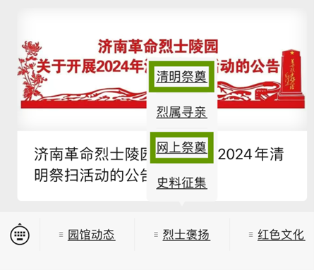http://jngmlsly.jinan.cn,点击首页“网上祭奠”,即可云端寄哀思。